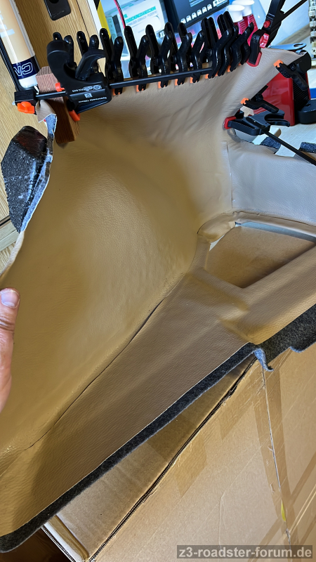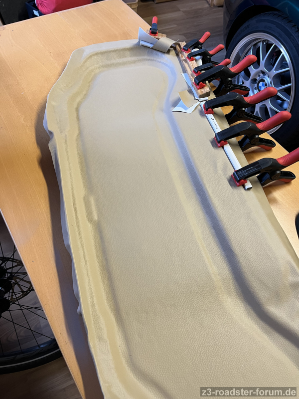 …eigentlich sollte "nur" die Filz-Verkleidung oben im Kofferraumdeckel mit (Kunst)-Leder gepimpt werden.