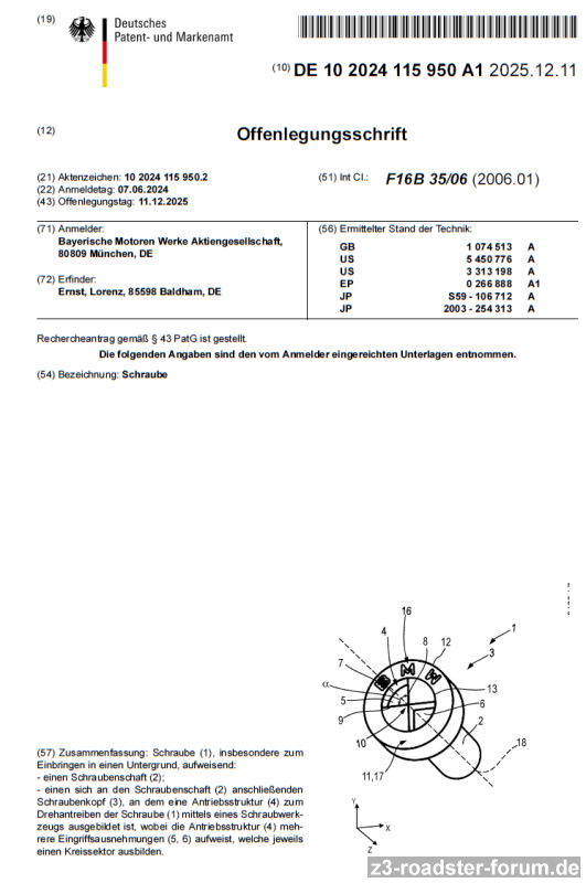 BMW hat ein Patent für eine Schraube angemeldet, deren Kopf das Markenlogo trägt und nur mit einem speziellen Werkzeug gelöst werden kann.