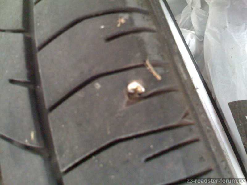wollte eigentlich heute ne kleine Runde fahren, doch daraus wurde nichts. Zumindest nicht viel. Bin ungefähr 10m weit gekommen. Ich fahr ja grundsätzlich offen, also Fenster runter ^^, und hör so ein schlackern. Schnell angehalten. Geguckt, na toll. Hinten rechts platt. Aber sowas von platt, das glaubt ihr nicht. Kurz überlegt, bin dann vorsichtig zur Garage gerollt und hab mir das mal angesehen. Eine hochwertige Spaxschraube hat sich schön in richtung Flanke gedrückt. Ja riesig. Reifen hinüber. Hab jetzt einfach einen hinteren von den alten Felgen draufgeschraubt. Ziemlich ärgerlich sowas. Und ich pass schon immer so auf