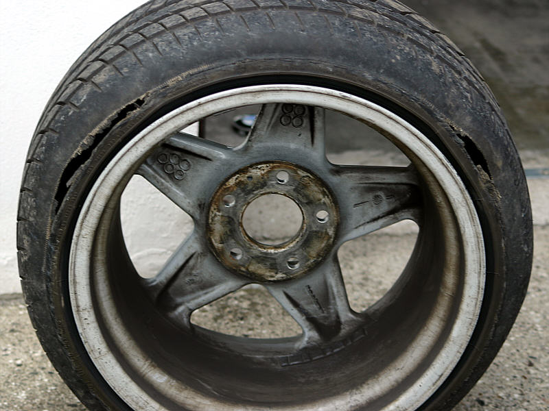 Gesamtschaden der Faulheit ca. € 480,- Ein Reifen 245/35 ZR 17 und eine neue Felge AZEV 10 x 17