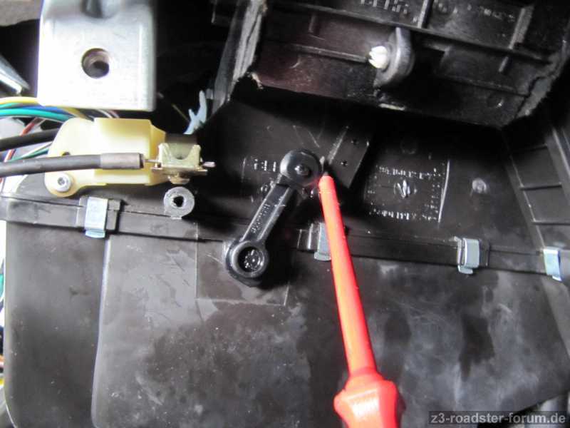 Bevor du mit diesem etwas größeren Akt der Mittelkonsole anfängst, würde ich auf jedenfall zunächst nur das Handschufach ausbauen. Das ist ruckzuck gemacht. Dann kann man die Verkleidung der rechten Mittelkonsole etwas beiseite biegen und mittels Taschenlampe schon mal einen Blick von hinten auf den Drehschalter und den Bowdenzug werfen. Möglicherweise ist der Bowdenzug nur ausghängt oder der Mechanismus des Drehschalters (Nippel) ist nur aus der Führung gesprungen und du kannst ihn so wieder hereindrücken (über den Radioschacht oder von hinten aus Richtung Handschuhfach). Muss ja nicht unbedingt ein abgebrochener Nippel sein, wie bei mir.