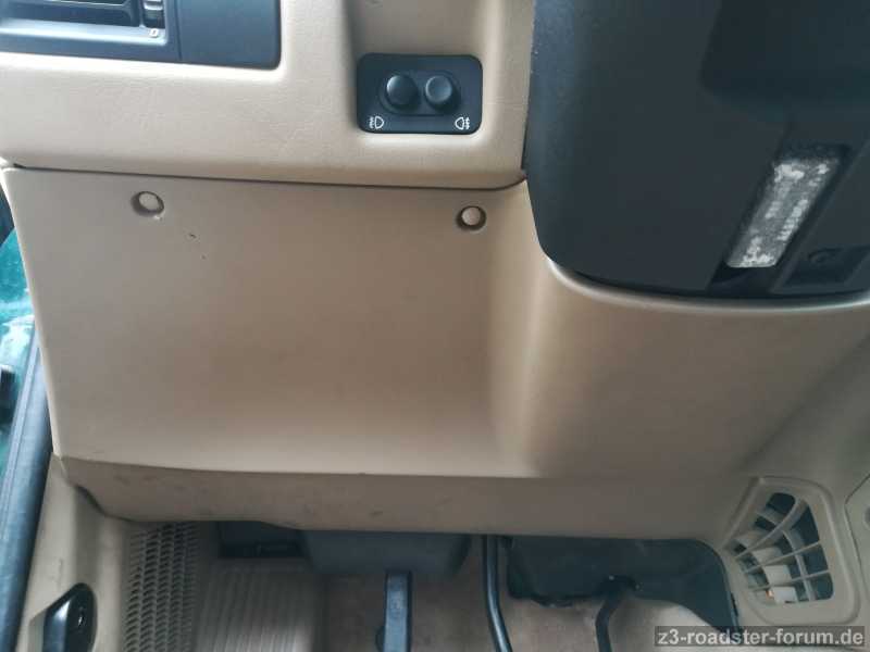 als erstes muss die Verkleidung unter dem Lenkrad ab ..müssten 6 Schrauben sein . Noch ein Tipp ,erst die untere schwarze Verkleidung bei den Pedalen ausbauen .Sind zwei Plastikschrauben Prinzip Bajonettverschluss.