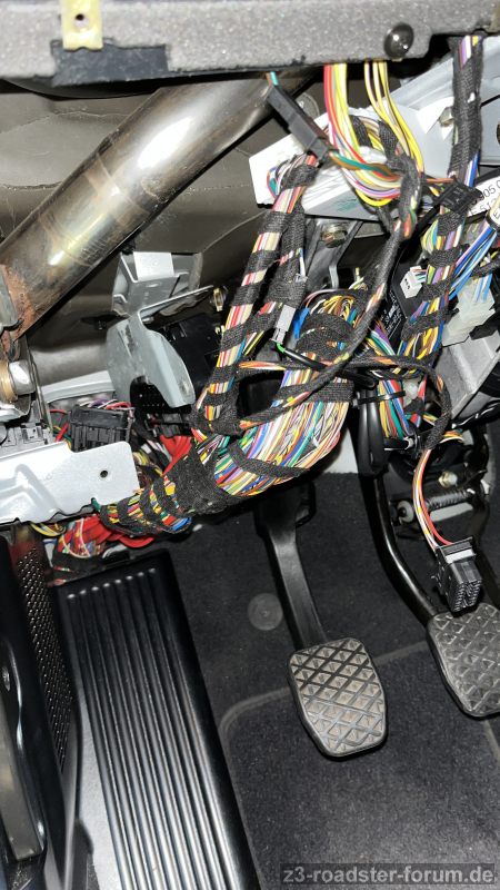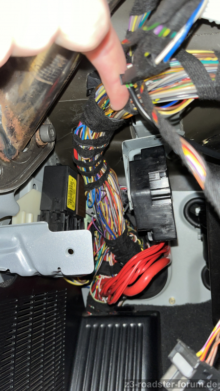 Ich kenne diverse Threads, in denen es um frühere Baujahre ging und ein passender Stecker unter dem Armaturenbrett Fahrerseite vorhanden ist, um den kleinen BMW-Kabelbaum anzuschließen und den Innenspiegel zu tauschen. Ich habe diesen Stecker aber nicht bei mir finden können und es bewahrheitet sich damit wohl, dass es in 2000/2001 eine Änderung der Verkabelung gab. Im Windlauf bei der Deckenleuchte befindet sich kein Stecker (sagen diverse Fotos, die ich finden konnte), bei mir gehen dort entlang der A-Säule Beifahrerseite lediglich drei Kabel nach oben.