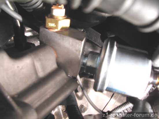 Ich habe den originalen Temperaturfühler Wasser/Öl** ausgebaut (anderes Doppel-Foto) und dort den Leather Z Block hingemacht.