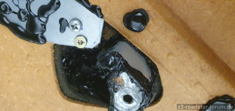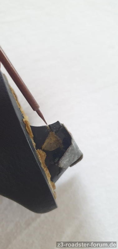 Vorgehen:- Plastik-Innenteil mit den Draht-Einsätzen und der Plastic Welding Gun verstärken; diese dann abclipsen und mindestens fahrerseitig abschleifen und vergießen, weil dies sonst das Kabel und Stecker für Spiegelverstellung beschädigt