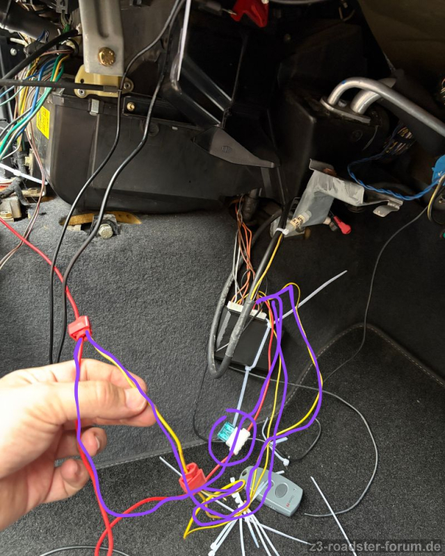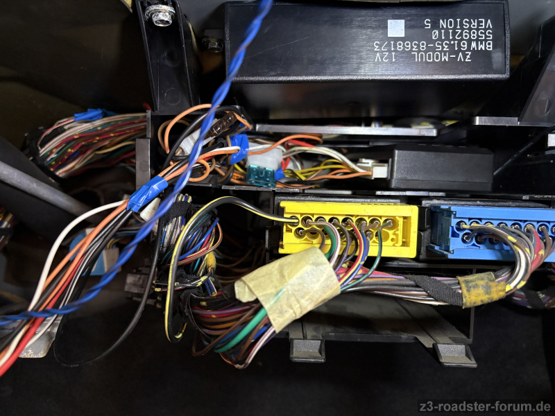 1) Signalleitungen, um der ZV/dem Grundmodul zu sagen "sperr auf/zu" = steuere alle ZV-Motoren an; so genutzt z.B. von der originalen FFB und von den Stellmotoren selbst als Rückmeldung an die ZV zur Ansteuerung der anderen ZV-Antriebe, wenn Du an einer Stelle mit dem Schlüssel mechanisch aufsperrst. Die sind Ws/Gn und Ws/Sw von den Motoren, und Bl/Rt/Ge und Ws/Rt/Ge vom Original Funkmodul, das es bei Dir aber wahrscheinlich baujahrbedingt noch nicht gibt/vorgesehen ist.