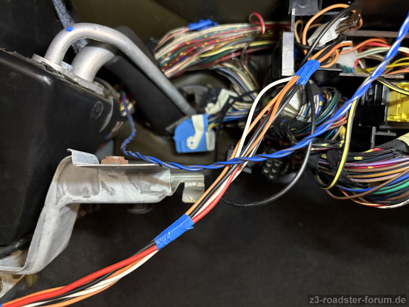 Warum die Masse auf das blaue Kabel geht, und was das blaue Kabel ist, kann ich Dir nicht sagen. Dazu bräuchte ich den Stecker und den Pin aus dem das Kabel kommt. Ich finde im Schaltplan nix was da (nur) blau wäre. Masse ist normalerweise immer braun oder braun/xxx....