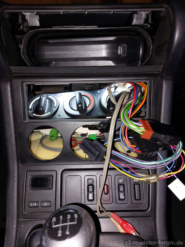 > Radio, Antenne, Cinch-Kabel für den Aktiv-Woofer abgesteckt