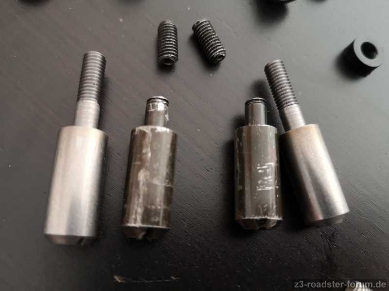 Damit ist der einzige Unterschied der Aufbau mit dem Gewinde. Das müßte bedeuten, dass die Plastikscheiben durch einen aufliegenden Bolzen (eventuell mit leichter Abgratung an beiden Stücken) ersetzt werden können, denn sonst würde es ja keine andere Version geben.
