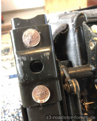 heute habe ich mich auch mal an das "entwackeln" der Vordersitze begeben. Vorab hatte ich mir in der Bucht 8 neue weiße Vitonscheiben besorgt. Nach dem Sitzausbau wie zu erwarten, war in den Führungsstücken nur noch zäher Gummibrei. Also alles gereinigt, die neuen Scheiben aus Viton (was auch immer das ist) eingebaut. Das ging sehr stramm zusammen.