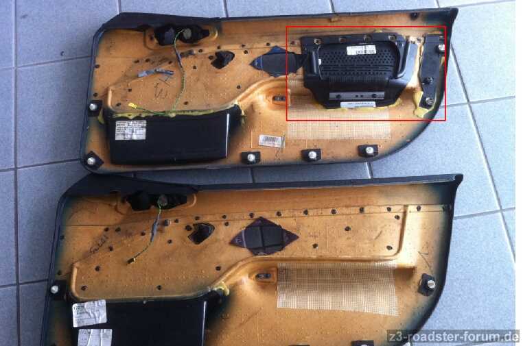 Den markierten Bereich, dieses Plastikstück, müsste man wohl rausschneiden und in meine Türverkleidung wieder reinkleben.