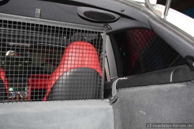 Daher habe ich ein altes Fangnetz aus einem Mercedes-T-Model ausgebaut. Der Rollmechanismus wurde nicht verwendet. Die obere Befestigung passt, mit kleinen Anpassungen, in die originalen Coupe-Rasttaschen.