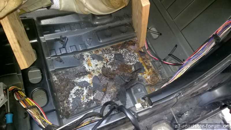 Unter dem Fahrersitz ist der Teppich von der Unterseite (Schaumstoff) nass und nach hinten wird es mehr.