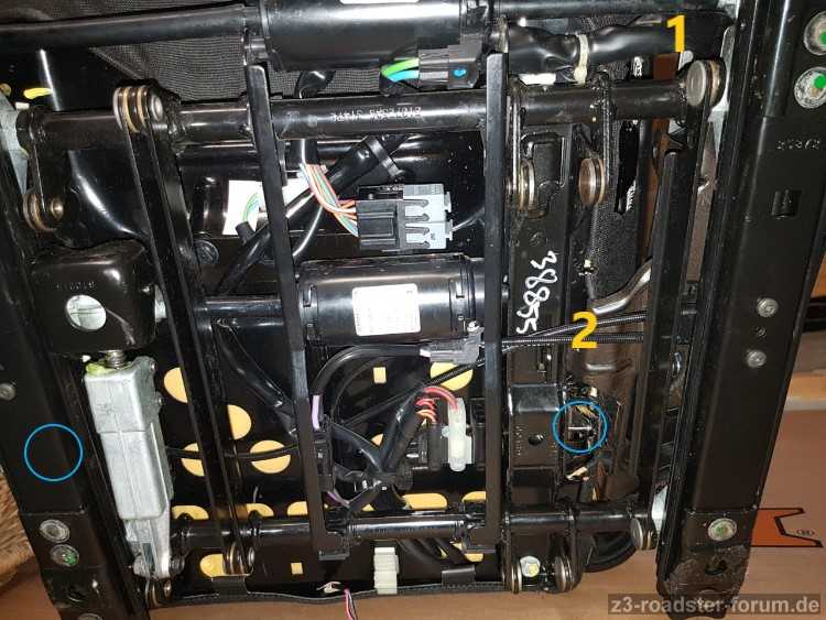 Nach Jahren gehe ich nun endlich meinen Fahrersitz an: Habe stets das Gefühl, als ob sich die Sitzfläche nach links absenkt. Zudem geben die Wangen links bei Kurven nur noch mäßig Halt. Will den Sitz darum aufpolstern. Habe den Sportsitz nun draussen zum Demontieren. Und nun schon mein erstes Hindernis: Die seitliche Plastik-Konsole mit der Sitzverstellung (blauer Pfeil)