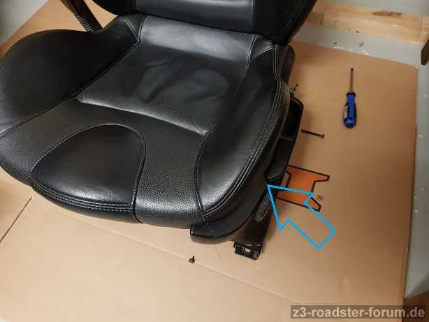 Nach Jahren gehe ich nun endlich meinen Fahrersitz an: Habe stets das Gefühl, als ob sich die Sitzfläche nach links absenkt. Zudem geben die Wangen links bei Kurven nur noch mäßig Halt. Will den Sitz darum aufpolstern. Habe den Sportsitz nun draussen zum Demontieren. Und nun schon mein erstes Hindernis: Die seitliche Plastik-Konsole mit der Sitzverstellung (blauer Pfeil)