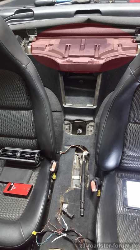 nach erfolgreichen ausbau der mittelkonsole und div. anderer teile, (dank hilfreicher beschreibungen, hier im forum), wollte ich den deckel der ablage öffnen und hatte den sogleich in der hand. alle schraubenhalterungen sind abgebrochen, da das plastik schon etwas mürbe ist.