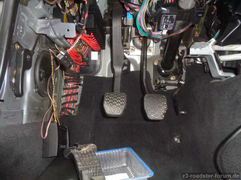 http://de.bmwfans.info/parts-catalog/Z3-Roadster/Europe/Z3_2.8-M52/L-N/jan2000/browse/pedals/pedals_supporting_bracket_clutch_pedal/ und so schaut es unter dem Teppich aus. Man erkennt nicht viel, aber es gibt in dem Bereich keine Metallleitungen außer direkt am Geberzylinder die grüne 4,75 mm Rohrleitung aus Bemsleitungsmaterial.
