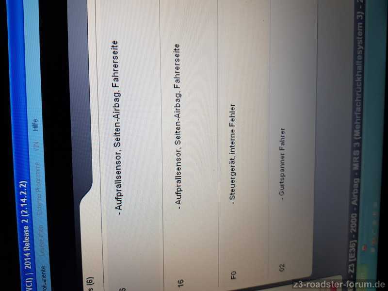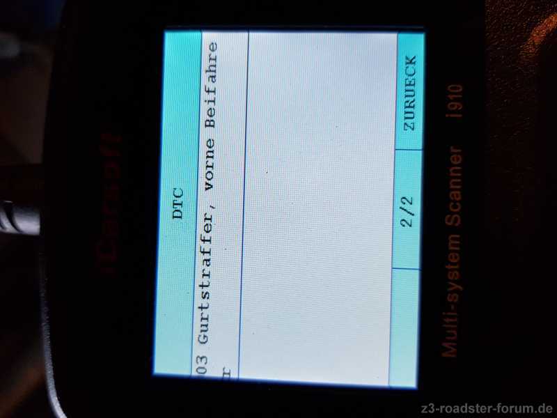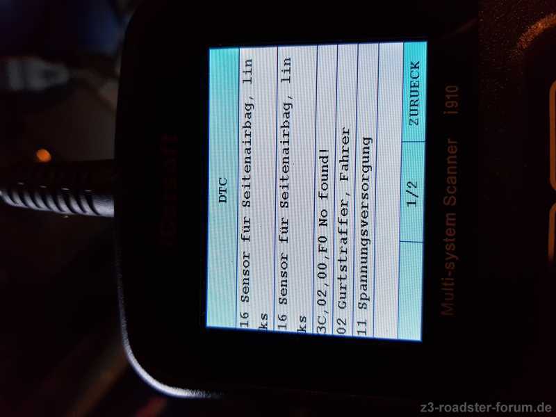 Fehlercode 02 Gurtstraffer Fahrer und 03 Stromversorgung.