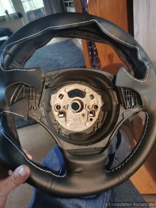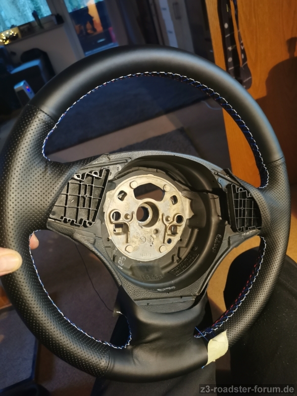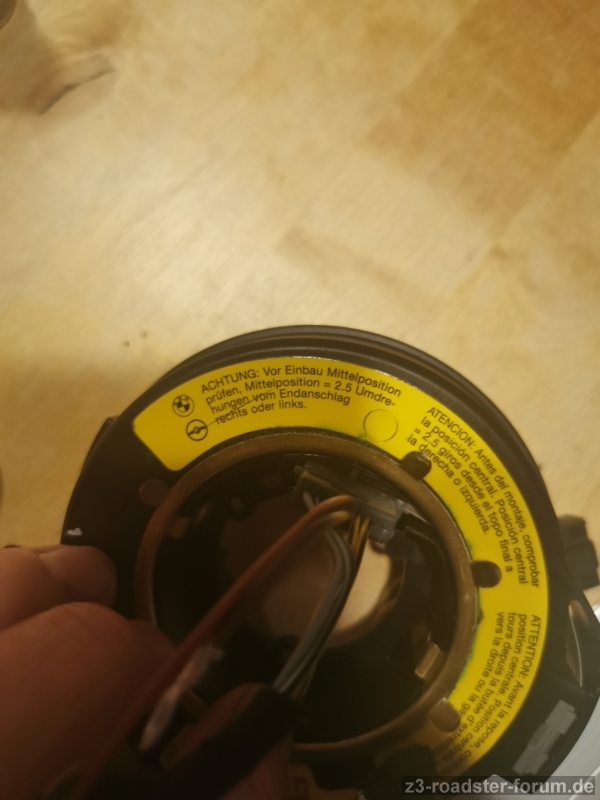 jetzt bin ich es schon wieder. Wollte ja eigentlich einige Dinge am Z3 im Winter erledigt haben, aber das war mir dann doch zu kalt, so dass ich im Haus und Zetti im Schuppen blieb und ich noch 2-3 Dinge geplant habe über Sommer. Dazu gehört, das Lenkrad neu zu beziehen. Seit gestern ist es weg und ich hoffe ich kann es wie geplant morgen, pünktlich vor Ostern wieder abholen. Aber nun zum Thema der Überschrift. Das Lenkrad, 2 Speichen unten, hat ja den Schleifring angeschraubt. Beim abnehmen habe ich leider nicht darauf geachtet, ob dieser Ring an der Lenksäule in einer bestimmten Position sitzen muss. Ich zähle 5, naja, eher 5 1/2 Drehungen von Anschlag zu Anschlag. Auf dem Ring selbst steht 2,5 Umdrehungen für Mittelposition. Soweit ist das klar, nur, was ist mit dem weißen Stift der da links an der Lenksäule rausguckt. Muss der Schleifring da irgendwie draufsitzen damit sich nicht beide Teile mit drehen. Wenn ja, wenn ich die Einkerbung nehme die passen könnte komme ich aber auch ca. 2 3/4 Umdrehungen damit die anderen Stecker dann auch in der richtigen Position sind. Ich würde das dann morgen so einbauen, aber vielleicht kann mir ja jemand dazu noch etwas sagen. Es fährt sich einfach schöner wenn man weiß es richtig gemacht zu haben. Das Lenkrad scheint ja irgendwie nicht oft verbaut worden zu sein, selbst die neue Spange von Leebmann war nicht die passende. Meine hat Gewindeschrauben mit Muttern in der Spange, das angeblich passende Ersatzteil sollte mit Schrauben für Kunststoff befestigt werden und hatte auch nicht die 4 zusätzlichen Haltenasen wie meine Spange.