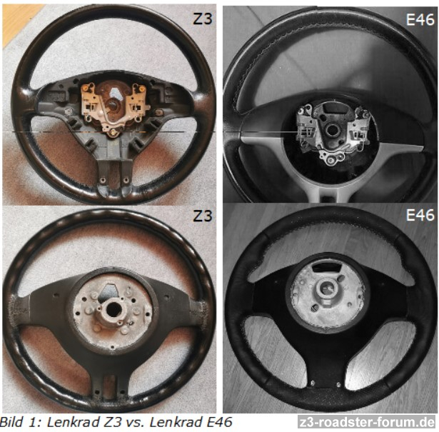 Daher lässt sich beispielsweise ein Lenkrad vom E46 oder E39 FL nicht ohne Umbau der Lenksäule im Z3 verbauen, auch wenn es von außen auf den ersten Blick gleich aussieht und in den einschlägigen Internetbörsen auch gerne als auch für den Z3 passend beworben wird.