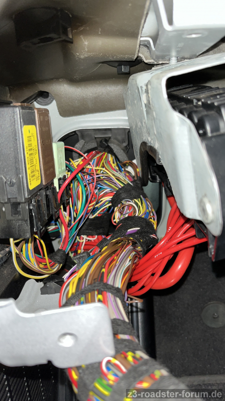 Ich kenne diverse Threads, in denen es um frühere Baujahre ging und ein passender Stecker unter dem Armaturenbrett Fahrerseite vorhanden ist, um den kleinen BMW-Kabelbaum anzuschließen und den Innenspiegel zu tauschen. Ich habe diesen Stecker aber nicht bei mir finden können und es bewahrheitet sich damit wohl, dass es in 2000/2001 eine Änderung der Verkabelung gab. Im Windlauf bei der Deckenleuchte befindet sich kein Stecker (sagen diverse Fotos, die ich finden konnte), bei mir gehen dort entlang der A-Säule Beifahrerseite lediglich drei Kabel nach oben.