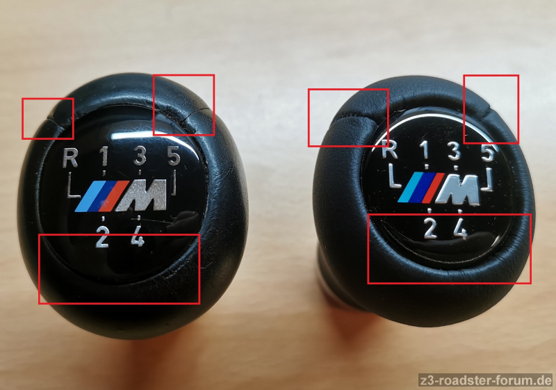 Hallo liebe Freunde des gepflegten Innenraums! Ich habe mir aus Jux mal einen 15€ "China-Klon" des Short-Shift Schalthebels bestellt (BMW-Preis 68€). Mein originaler ist schon etwas mitgenommen, der war wohl schon lange drauf. Jedenfalls dachte ich mir ich teile hier mal die Vergleichsbilder, anhand derer man den Unterschied schön erkennt. Auch weil immer wieder angebliche Originale "günstig" angeboten werden, es sich aber um die 15€-Imitate handelt.