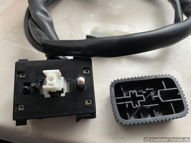 Ein Nachbar, der mich am Wochenende gesehen hat, ist gerade vorbeigekommen, und aus sein Teilefundus ein Schatz mitgebracht. Von sein ehemaligen Z3 den er vor 10 Jahre verkauft hat hatte er noch ein Sitzverstellungsknopf. Inkl diesen weissen Teil der mir fehlte