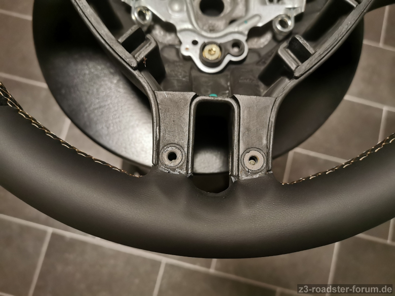 Da ist jedoch eine Stelle, an der die Naht ein wenig arg locker ist. Es handelt sich um eine schwarze Naht an einem schwarzen Lenkrad im oberen Halbkreis, was vom Ergebnis her nicht so ins Auge fallen würde.