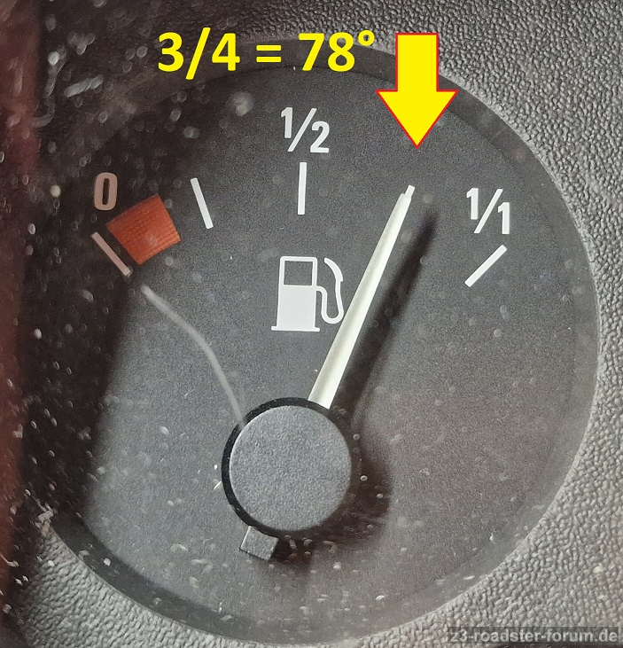 Tank: Wert = 78° -> Anzeige 3/4