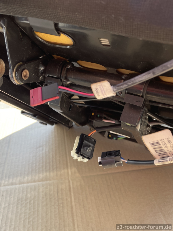 Der violette Stecker war auch richtig am Sitz eingesteckt. Das Problem ist eigentlich nur der kleine weiße Stecker vom Boden her für den es keinen passenden Anschluss am Sitz gibt, sowie der schwarz-weiße Stecker am Sitz der auch kein Gegenstück hat. Ich hoffe das macht Sinn