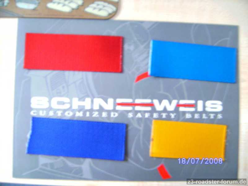 Ich hab mit der netten Dame abgemacht, dass ich die originalen Gurtbänder besorge, ihr zuschicke und die Umgebauten zurück bekommen. Es wird nur das Gurtband gegen ein farbiges ersetzt. Diese Gurtbänder sind natürlich für die Verwendung als Sicherheitsgurt zulässig.