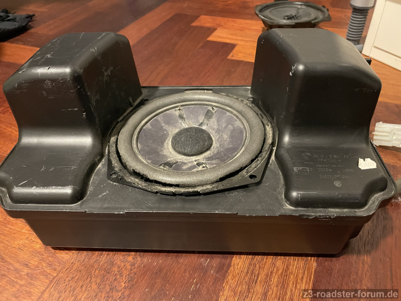 seit kurzem bin ich nun auch stolzer Z3 Besitzer. Leider ist bei meinem Harman Kardon System der Subwoofer zwischen den Sitzen kaputt gegangen, genauer gesagt ist die Membran gerissen. Da ich das Auto weitestgehend original belassen möchte, soll nur der Lautsprecher ausgetauscht werden, also ein neuer in die bestehende Box eingesetzt werden.