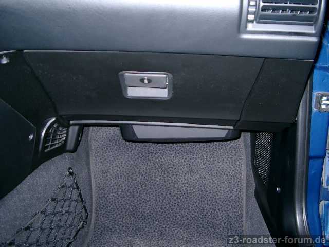 Verkleidung im Fussraum und Handschukasten raus.