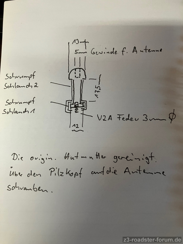 MaWo hat geschrieben:ich habe den Draht in der Mitte des Antennenverstärkers blank gemacht, die V2A Feder drückt darauf wenn der Pilz über die "orig. Hutmutter" auf den Antennenverstärker geschraubt wird. Das Teil ist einfach wechselbar, obwohl es eigentlich nicht mehr kaputt gehen kann.