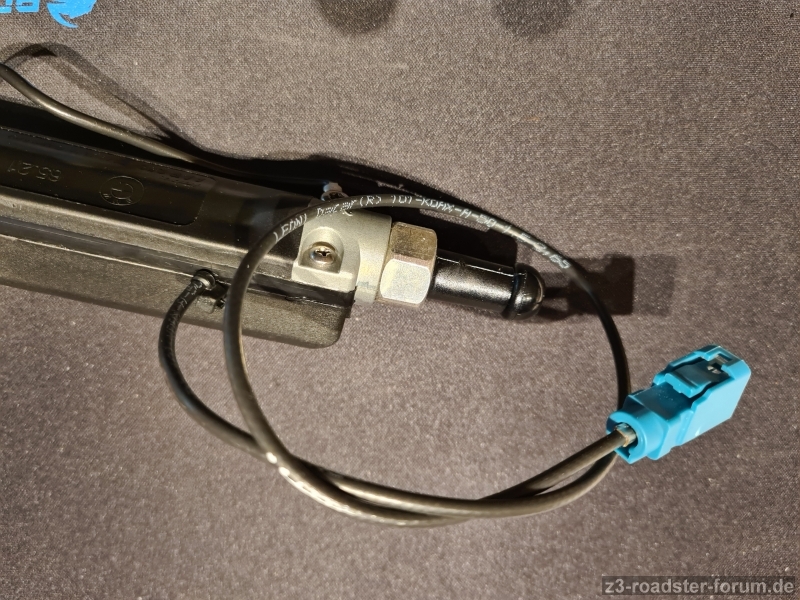 An der Antenne wird das ganze bisschen schwieriger. Ich habe mich für die ATBB Antenne 2116.04 entschieden, da ich einen neuen Stab und ein Fakra- Anschlusskabel gebraucht habe. Die Antenne wurde zerlegt und das Kabel abgelötet. Den Orginalverstärker habe ich zerlegt und das Kabel der ATBB Antenne angelötet. Die Zugentlastung wurde mit 2 Kabelbindern realisiert - bitte nicht zu fest anziehen!