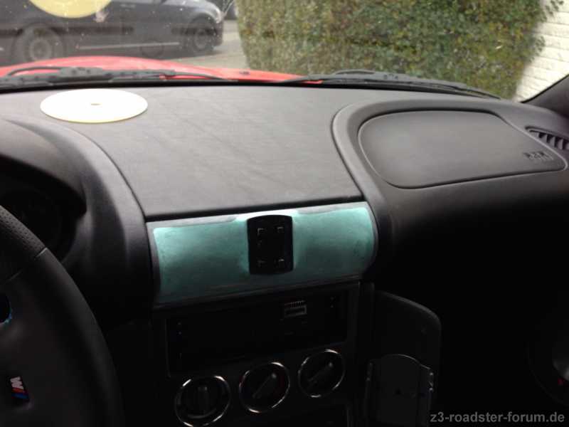 Es sollte mittig vom Lüftungsrahmen sitzen und leicht zum Fahrer ausgerichtet sein. Hatte heute frei, da hab ich mal meinen Lieblingswerkstoff angerührt.