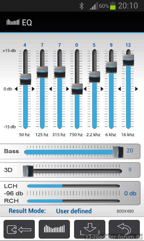 Im letzten angehängten Foto seht Ihr die DSP-Einstellungen der App, die besonders gut mit den Original Nokian BMW Lautsprechern (20/40 Watt) harmonieren (diese hier: VFL von Stereo auf Hifi im Fußraum für Originalliebhaber). Ihr seht, die 50 Hz habe ich wenig betont, dafür 125 Hz / 315 Hz mehr betont, da die Lautsprecher damit besser zurechtkommen und bei höherer Lautstärke nicht verzerren.