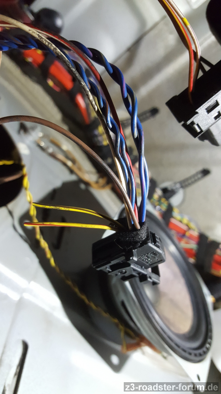 Wie es aussieht hast du keine org. Lautsprecher mehr verbaut. Die abgeschnittene Kabel sehen aus wie die von den Lautsprecher, dann gehört der Stecker zum hifi system wo der Verstärker an dem Lautsprecher im Fußraum Fahrerseite sitzt. So ist es bei mir auf jeden Fall.