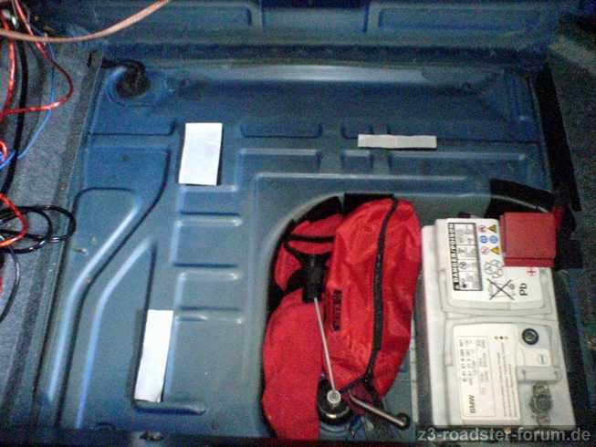 Rechts im Kofferraum, wo das Pluskabel nach vorne läuft, habe ich GAR KEINEN Punkt gefunden, wo ma nevtl etwas befestigen könnte.