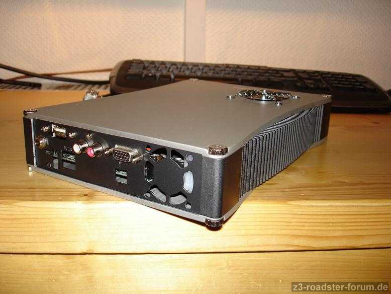 Angeschlossen wird ein Kleinst-PC im 5 1/2 " Alu-Laufwerksgehäuse, den ich vor ein paar Wochen komplett in Eigenregie aufgebaut hab. Der Rechner hat ne Größe einer 3,5" Festplatte. Ein spezielles Auto-Netzteil sorgt für den Strom. Ach und Leistungsmäßig ist der Rechner auch nicht von schlechten Eltern. Alles bei der Größe. Ein Celeron Prozessor mit 650Mhz und 512Mb DDR Ram reichen locker um mein Vorhaben gut zu realisieren. Es ist noch eine 40GB Festplatte verbaut, weil ich die so kriegen konnte, aber die wird vielleicht bald weichen müssen. Mal gucken.