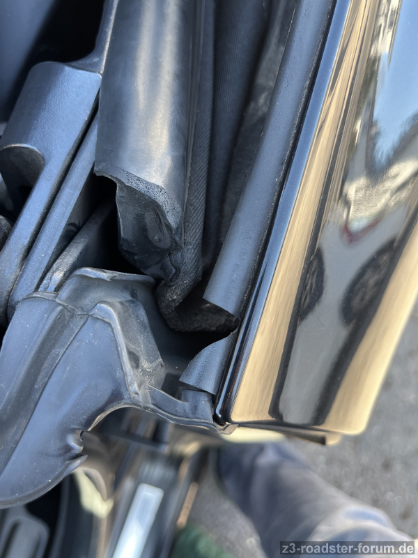 Bei mir ist die "Endkappe" aus Kunststoff an der Verdeckdichtung auf der Fahrerseite abgebrochen...
