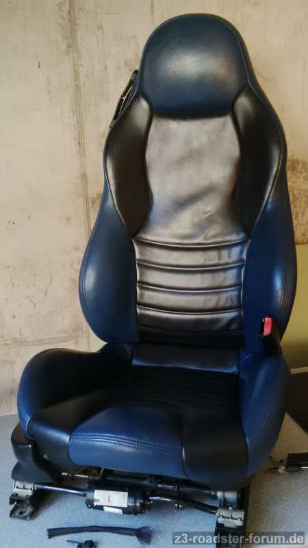 i have 2 seat leather cover estoril blue/black for Z3M. One of them with a 1cm hole in the black leather, one with the blue leather in not good condition in the back peace. I can take pictures tomorrow with better light outside. The original leather is 15-20 Years old......and new leather....i dont know a company for new leather in the same design.