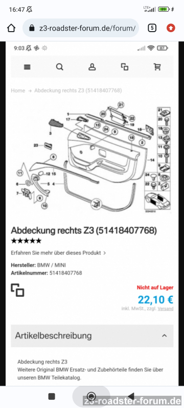 4. Die dreieckige Verkleidung hinter der Dreiecksscheibe der Türverkleidung rechts.