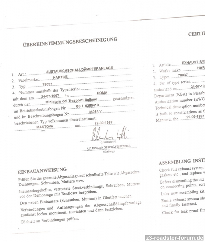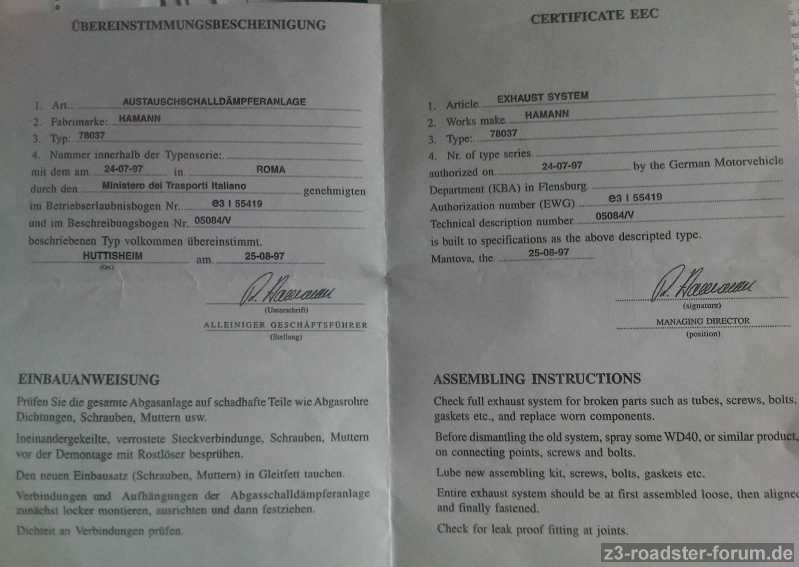ABE gibt's keine, wenn er ne e-Nummer hat! Übereinstimmungserklärung heißt es dann richtig, welche klarstellt dass der Endtopf für dein Fahrzeug zugelassen ist. Klingt nach Wortklauberei, ist aber ein wichtiger Unterschied, ebenso wie ABE und Teilegutachten/Materialgutachten. Das sind spezifische Begriffe mit unterschiedlicher Bedeutung und auch Konsequenz, deswegen ist die Differenzierung wichtig, auch wenn das im Volksmund alles irgendwie "ABE" heißt.