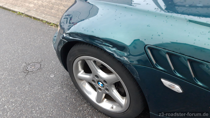 leider wurde mein Z3 vor ca. 6 Wochen, während eines 20 minütigen Parkstops, arg zerknittert. Der Unfallverursacher, sehr wahrscheinlich ein Linienbus, machte sich auf und davon - Fahrerflucht. Die Suche nach dem Schädiger brachte bisher kein Ergebnis.