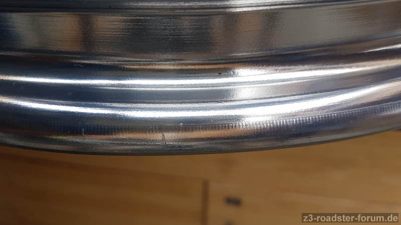 Zustand: neuwertig (Reifen montiert, zum TÜV, eintragen lassen, abmontiert, seit dem im Showregal gelagert (durch das rein-/rausheben haben die leichte, wegpolierbare feine Kratzer)), man erkennt die Druckstellen der Reifenauflage bei genauem Hinsehen (siehe 5. Bild).