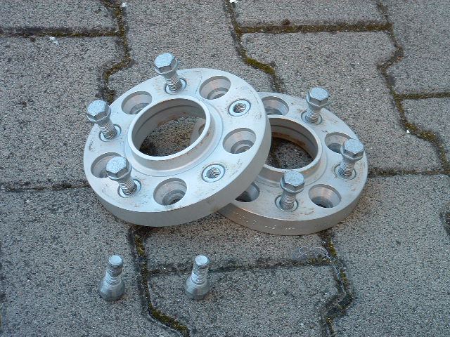 Verkaufe Spurverbreiterung von H&R, 2x20mm zum Aufschrauben, mit eingepressten Gewindebuchsen. Die Scheiben wurden einen Monat lang gefahren.