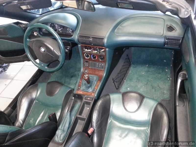 Das Armaturenbrett hat werksseitig die grüne Ledereinfassung und ist optisch topp.
