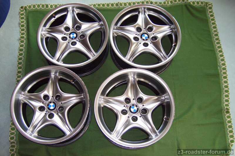 Verkaufe hier einen Original-Satz Styling 40- Felgen in chromeshadow. 3 Felgen (vor allem die hinteren beiden) haben Bordsteinschäden. Die Felgen waren auf meinem M Roadster montiert.