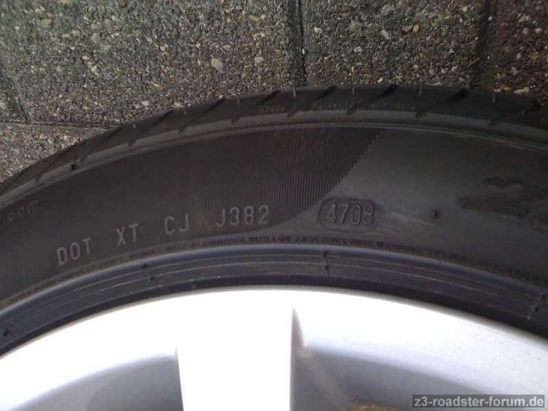 Die Reifen waren als Erstausstattung auf unserem E91 LCI und haben ca. 17 tkm Laufleistung. DOT Ende 2008, das Profil liegt bei gut 6 mm rundum, werde aber nochmal genau messen (habe gerade keinen Zugriff auf die Reifen). Die Felgen sollen mit Winterreifen ausgestattet werden, daher sind die Reifen übrig. Gleichmäßiger Verschleiß, keine Beschädigungen.